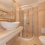 Alguns dos quartos com ar condicionado compreendem pátio e varanda, e estão mobilados com sofá. As casas de banho de dentro incluem casa de banho separada e chuveiro, juntamente com secador de cabelo e lençóis de banho.